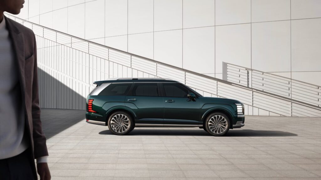 The Hyundai Palisade is known for its advanced safety and smart technology. First, Hyundai SmartSense can quickly find cars, people, and lanes using cameras, radar, and sensors. Because of this, features like adaptive cruise control, smart cruise based on navigation, and lane following assist make driving safe and easy.